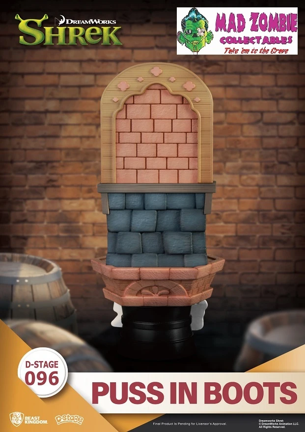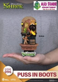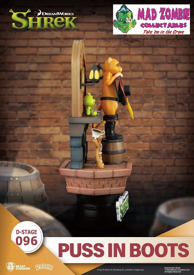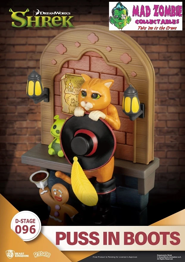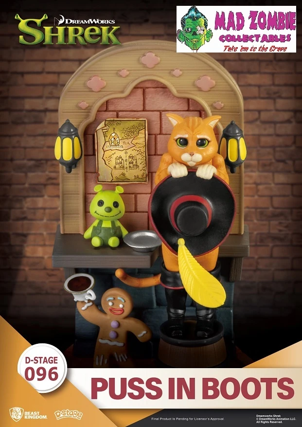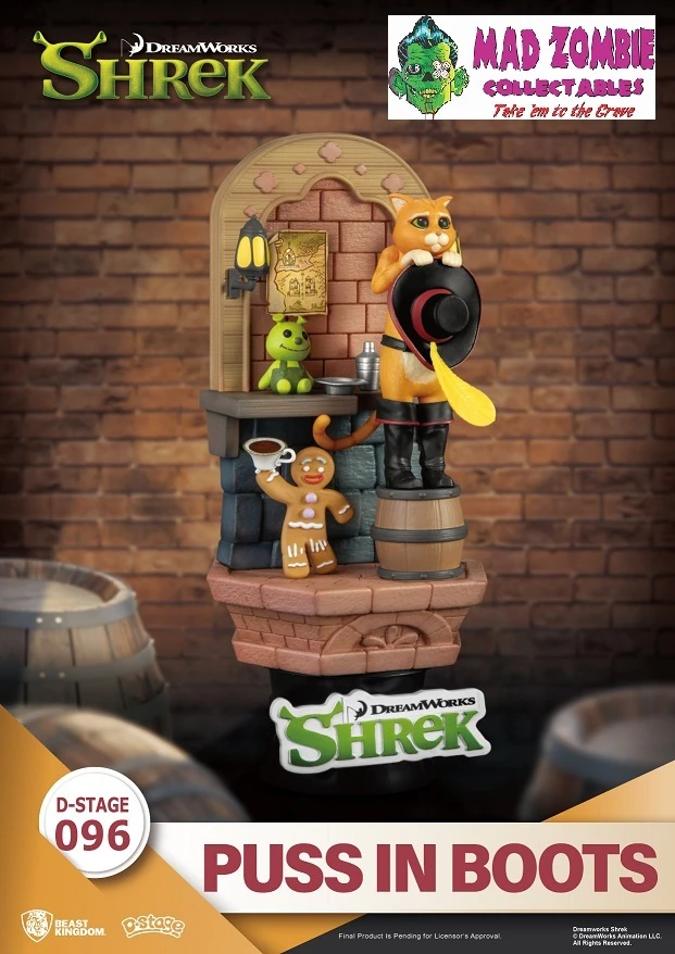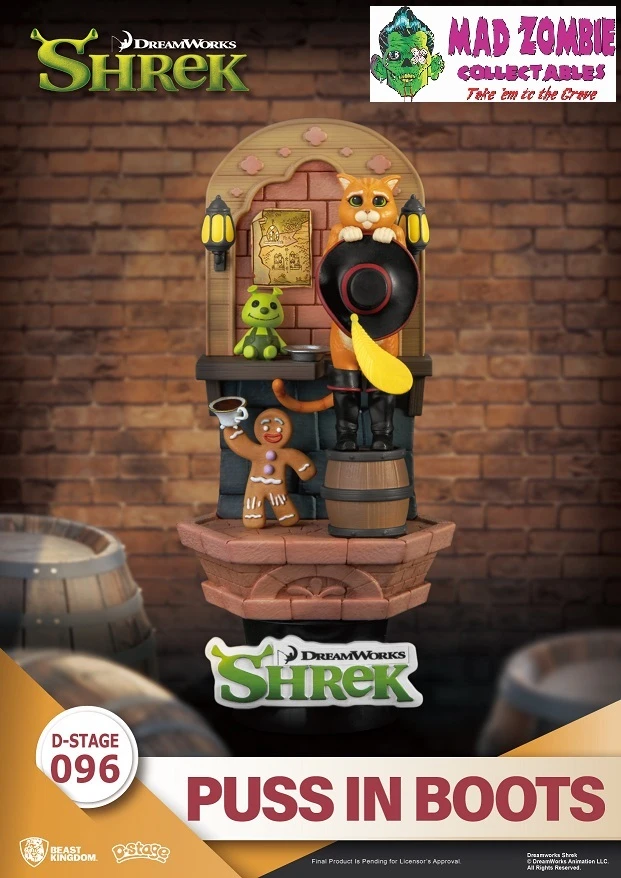 Beast Kingdoms presents the latest addition to its D-Stage series from the classic film Shrek. Puss in Boots will melt your heart with big watery eyes, signature hat in hand, and boots on his feet. The scene is completed with the strong personality of the Gingerbread Man and a cute Shrek plush doll, all displayed in meticulous detail. It is sure to conjure up many memories as soon as fans lay eyes on it. This is an item you do not want to miss!