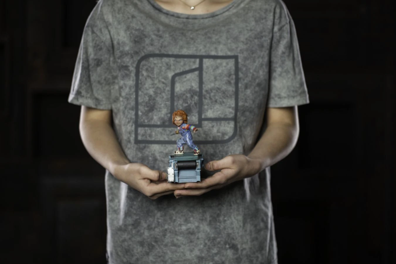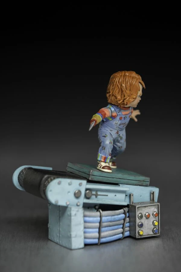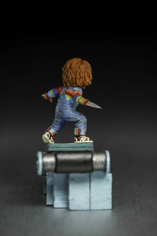 The unmistakable red-haired doll with colorful clothes is standing on the treadmill of one of the machines at the toy factory called Play Pals, where his plastic body was manufactured just like in the second film of his long trajectory in theaters. The doll appears with its lethal knife inserted in one of his fists, a sadistic smile on its face, and its big blue eyes focused on its next victim. The “Child’s Play II Chucky – Art Scale 1/10 – Child’s Play II – Iron Studios” statue arrives to add another cinema icon to Iron Studios’ horror line. The item is already available for Pre-Order.