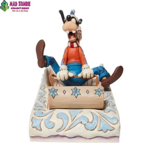 Hanging on for dear life, Goofy giggles his way down a snow covered mountain. Legs high in the air, he enjoys the rush of a slippery sled ride. With folksy Jim Shore details this Disney piece is an instant Christmas classic.