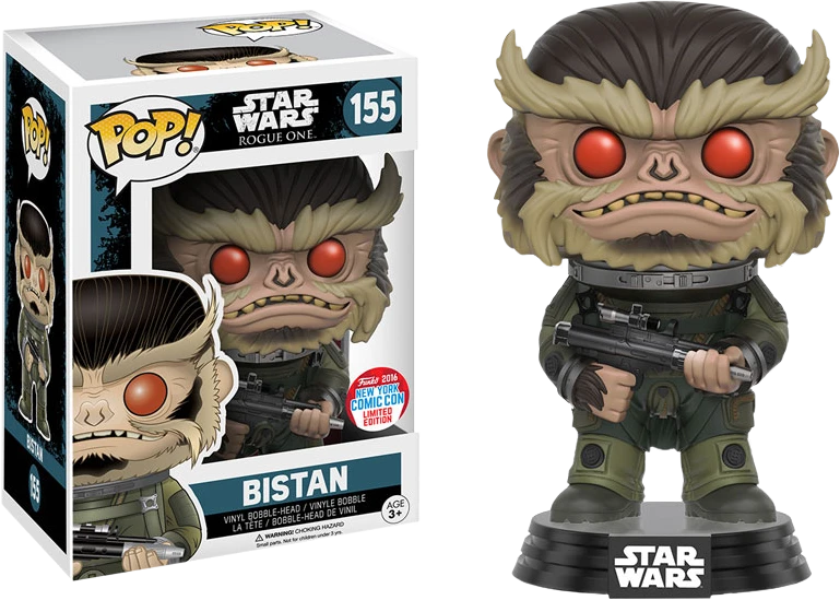 Star Wars: Rogue One – Bistan Pop! Vinyl Figure (2016 NYCC Exclusive). Rogue One is the newest instalment in the Star Wars Universe. It bridges the gap between Episode III and Episode IV and documents a Rebel Alliance attempt top steal the Death Star plans from the Galactic Empire. Bistian is an alien creature and member of the Rebel Alliance. He is only available as part of Funko’s NYCC range.