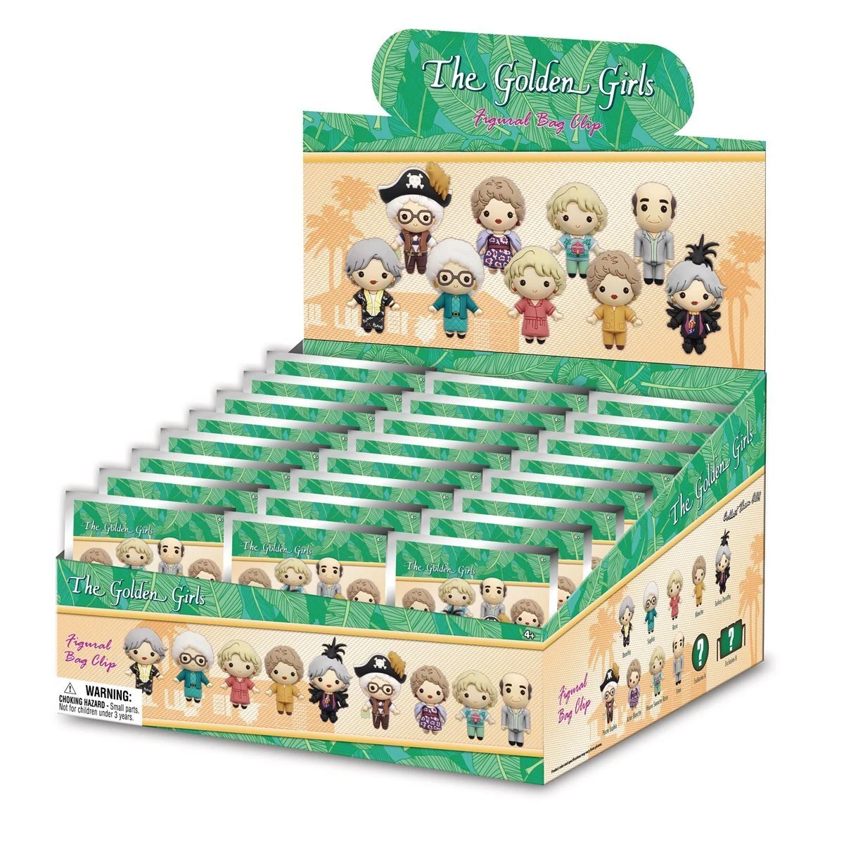 Look what we have for you! Favorite characters from The Golden Girls in a figural form you can clip to your bag, purse, or backpack! The assortment includes Dorothy, Sophia, Rose, Blanche, Turkey Dorothy, Pirate Sophia, Actor Blanche, House Sweater Rose, and Stan. Plus, there are two rare chase figures to watch for – Cheesecake Badge “The Golden Girls” Logo and The Couch! Each figure measures about 2-inches tall. Ages 4 and up.