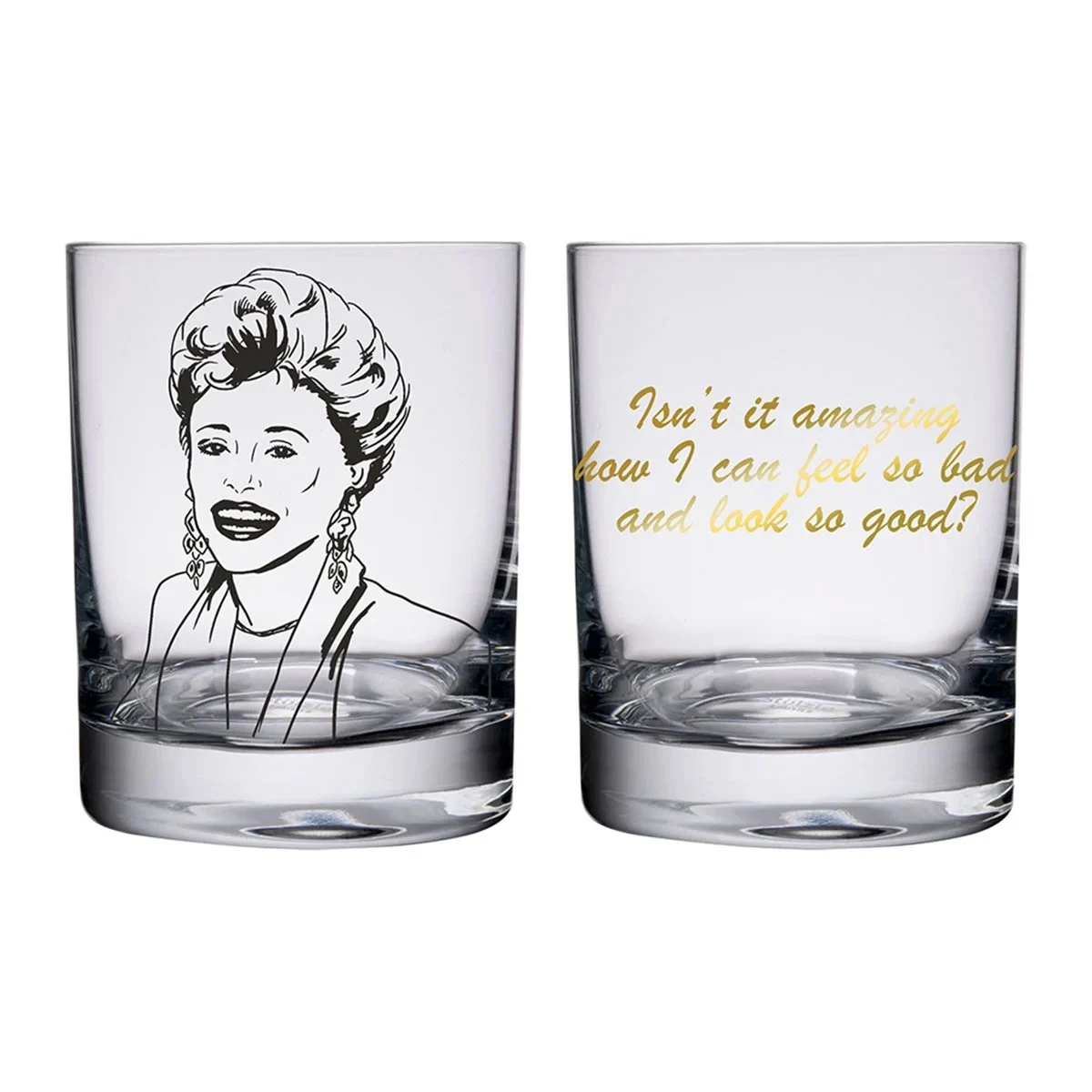 When it comes to clever quotes, it’s tough to top the one-liners that came out of The Golden Girls. That makes the glasses in this Golden Girls Quotes 10 oz. Glass 4-Pack keepers, for sure. Each features an image and a quote: Dorothy “Are you out of what’s left of your mind?!”, Rose “As they say in St. Olaf…”, Blanche “Isn’t it amazing how I can feel so bad and look so good?”, and Sophia “If I were a blessing, I’d run around naked.” C’mon, you gotta order this while you have the chance! Hand wash only. Not dishwasher safe. Do not microwave.