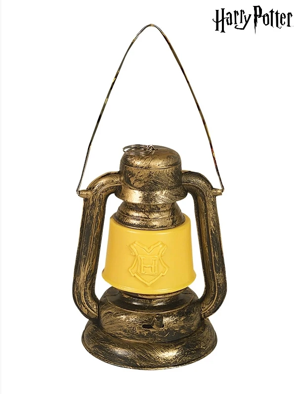 - Working moulded plastic lantern with weathered gold paint look to frame and yellow plastic diffuser with the Hogwarts emblem moulded into it