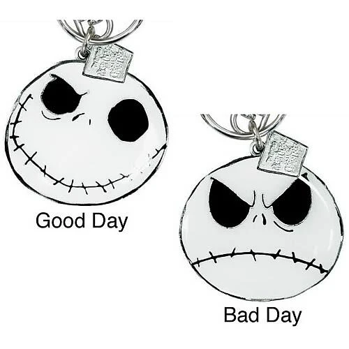 Made from solid colored pewter, this dual-sided Nightmare Before Christmas Jack Skellington Colored Pewter Key Chain is 2 1/2-inches in size and features a happy face on one side and a sad face on the other. Ages 3 and up.