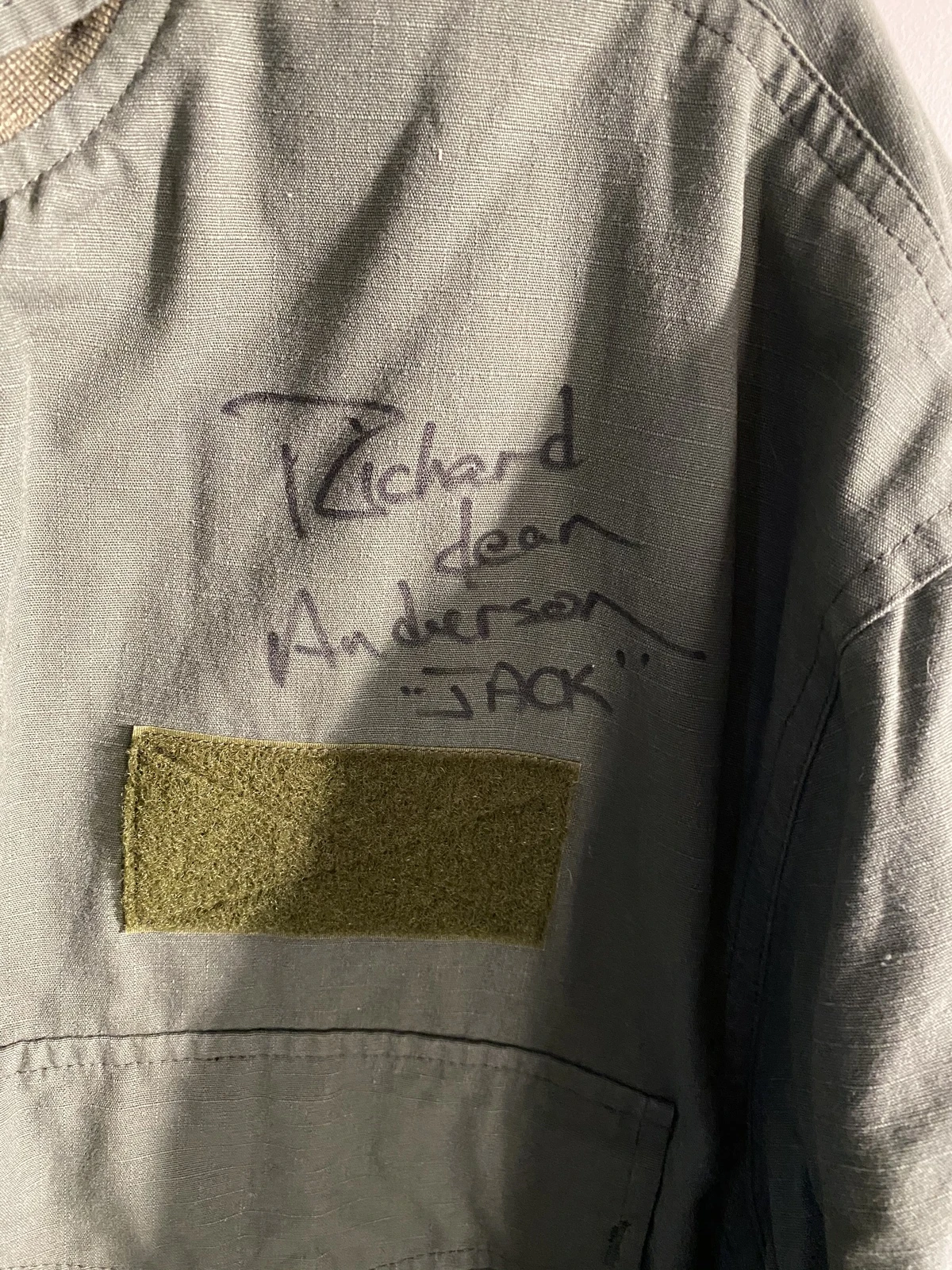 Stargate SG-1 Screen Used Jack O’Neill Jacket which has also been autographed by Richard Dean Anderson at Melbourne 2010. Item comes with embossed certificate of authenticity from Legends Memoribilia. 100% authentic