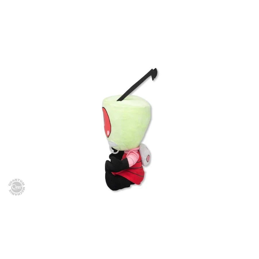 Our 10-inch tall Zim Zippermouth features his green Irk skin and the standard issue Invader uniform: a striped red tunic with pink collar and sleeves, as well as black leggings, boots, and gloves. Pay special attention to the position of his antennae because they only droop while he schmoops. Unzip his mouth, and a worm-like tongue is revealed.