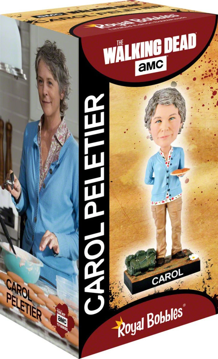 Now, Royal Bobbles has teamed up with AMC to provide an officially licensed series based on the gripping and dramatic TV series, The Walking Dead. This show, originally based on a comic, follows a group of survivors into a post-apocalyptic fight for survival in a world ravaged by a zombie epidemic. Its surprising plot twists and each compelling character’s intense drive to survive not only walkers, but other survival groups, captures viewers and continues to deliver top-notch entertainment. Each intricately designed bobblehead portrays a very lifelike image of the character.