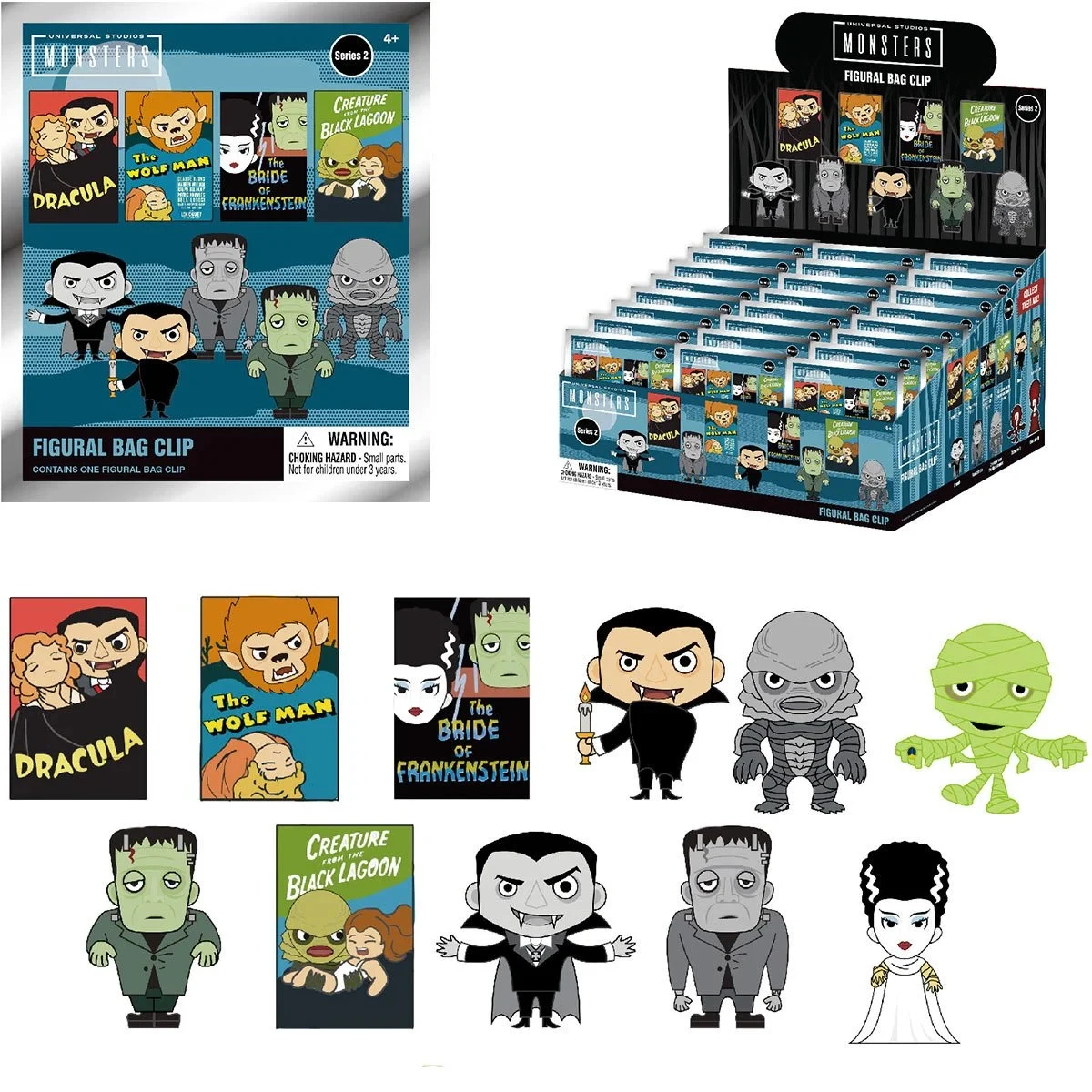 All your favorite monsters are here for you to collect in 3D foam! Keep an eye out for the special rare chase figures! Each figure measures approximately 2-inches tall. Collect all your favorites like The Wolf Man Poster, Dracula, Frankenstein, and more!